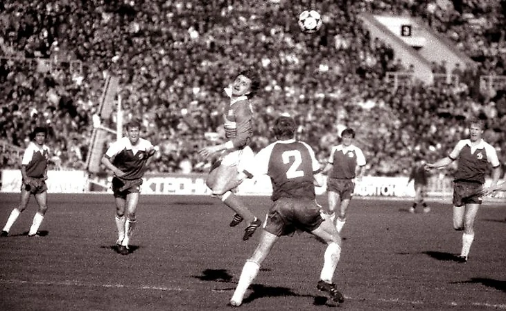 Действительно, в первом тайме киевляне не использовали четыре прекрасных момента забить. Один из них на видео, когда Владимир Бессонов на пару с Олегом Блохиным посредством коротких «спартаковских» «стеночек» (как в СССР называли этот элемент «венских кружев» австрийской вундертим 1930-х) вывели на ударную позицию Вадима Евтушенко, но тот не смог переиграть главного вратаря страны 1980-х Рината Дасаева. Не знаю, чем не устроил Блохин Лобановского, спартаковскими венскими кружевами, или же по какой иной причине. Только вот после замены 34-летнего ветерана в самом начале второго тайма на Андрея Баля у «Динамо» вообще исчезла острота в атаке.