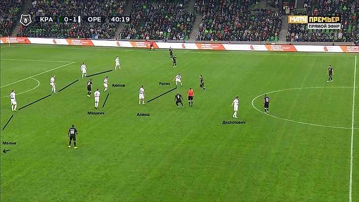 Деспотович освобожден от черновой работы. Он возвращается назад, только при затянувшихся атаках соперника. Под ним играет очень мобильная четверка полузащитников, которая может перестраиваться из 5-4-1 в 5-3-2 или 5-2-2-1. Например, против «Краснодара» Алвеш и Рогич уходил в центр, создавая еще одну линию для игроков соперника, что сразу создавало трудности «быкам», ведь они в лиге чаще всех атакуют через центр.