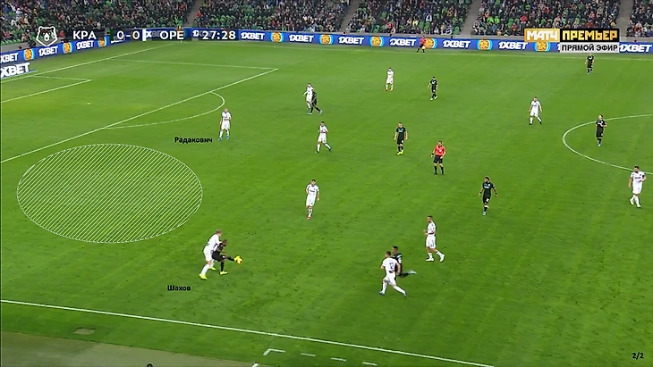 Понятно, что если бы сейчас туда начали врываться другие игроки «Краснодара», то сразу бы и сместился Радакович и Мишкич, но если есть свободная зона, то почему бы ей не воспользоваться?