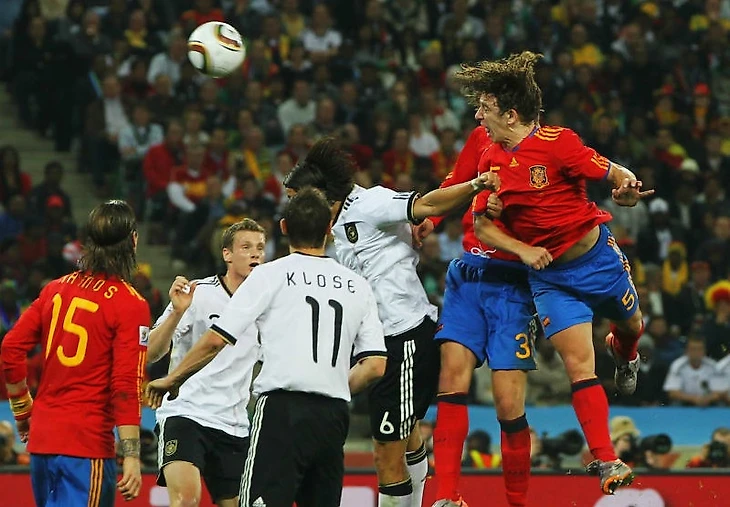 Германия оборонялась зонально и упустила Пуйоля. Получилось так, что в зоне ответственности Хедиры оказались сразу два высоких испанских ЦЗ. Пике выпрыгнул и помешал немцу среагировать на бежавшего из-за штрафной Карлеса, который головой вколотил мяч в сетку ворот Нойера. На немцев этот гол произвел эффект «холодного душа».