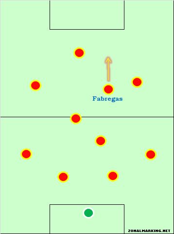 Его появление во второй половине матча с Англией было логичным, до тех пор, пока не стало понятно, что он заменил Силву, и должен был сам играть фальшивую девятку. Здесь, похоже, Дель Боске, совершенно упустил то, что Фабрегас привносит в игру Испании - играя как фальшивая девятка, он, в основном начинает высоко и, затем, двигается в центр по направлению к мячу, тогда как Испании нужно, чтобы Фабрегас двигался по направлению к воротам.