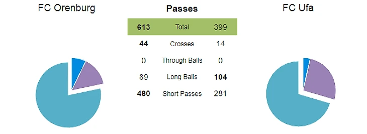 Также можно заметить огромный процент лонгболлов, целая четверть передач у «уфимцев» это дальние передачи. Конечно, ожидаемо, что этот процент будет высок, но четверть – это слишком.