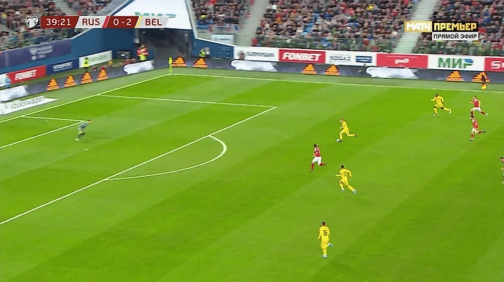 Мяч в итоге получил Мертенс, который одной передачей отрезал трех футболистов обороны сборной России.