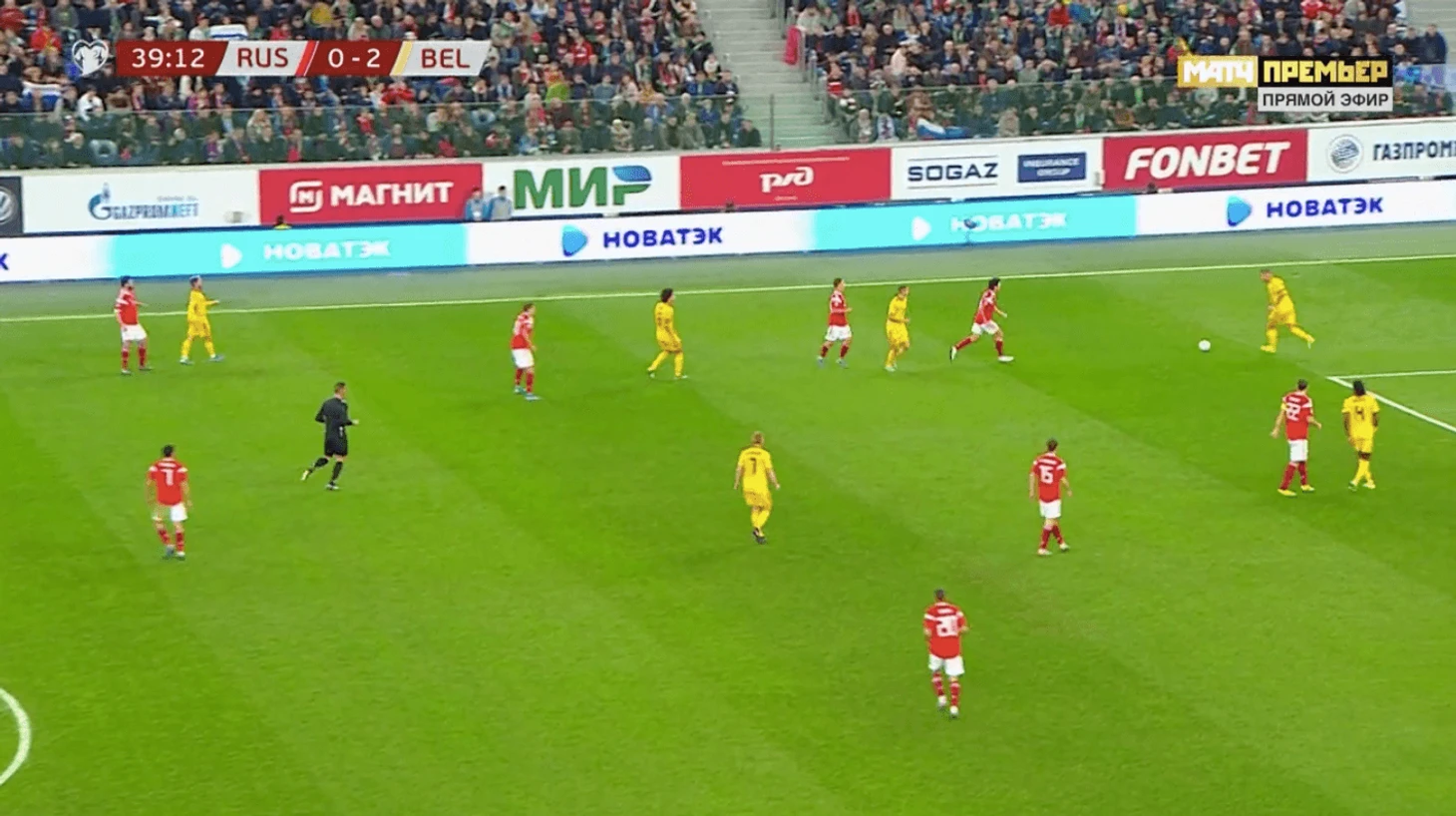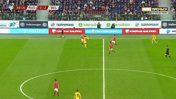 Шла 40-я минута. Россия очень осторожно прессинговала, а Алдервейрелд начинал атаку.