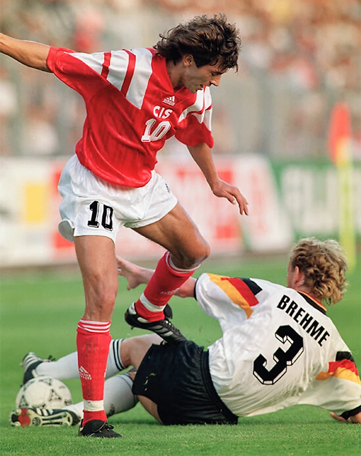Первым матчем на Евро для СНГ стала рубка с Германией. Команда Бышовца весь матч прилежно оборонялась и почти не пускала немцев к воротам, а на 62-й минуте Игорь Добровольский гениально обработал мяч грудью и в штрафной попал под силовой от Штефана Ройтера. С пенальти Игорь легко забил Иллгнеру, но победить не вышло.