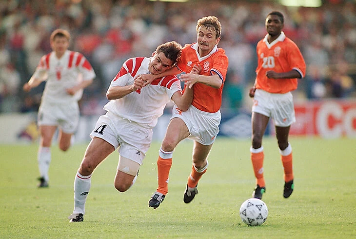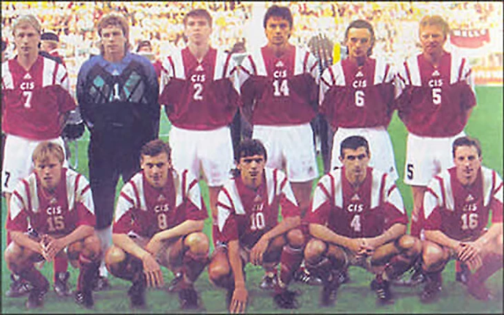 Кстати, вопрос с флагом и гимном решили довольно просто. На белый флаг нанесли аббревиатуру C.I.S. (Commonwealth of Independent States), а перед матчами включали 9-ю симфонию Бетховена, а точнее ее короткую часть – «Оду к радости». Надпись C.I.S. поместили и на переднюю часть адидасовских красно-белых футболок, которые на историческом турнире стали основным комплектом формы. Интересно, что в товарищеских встречах сборная использовала почти полностью красный комплект (тоже адидас), с красными трусами, белой полосой на груди и черными линиями на плечах, зато без надписи CIS на груди.
