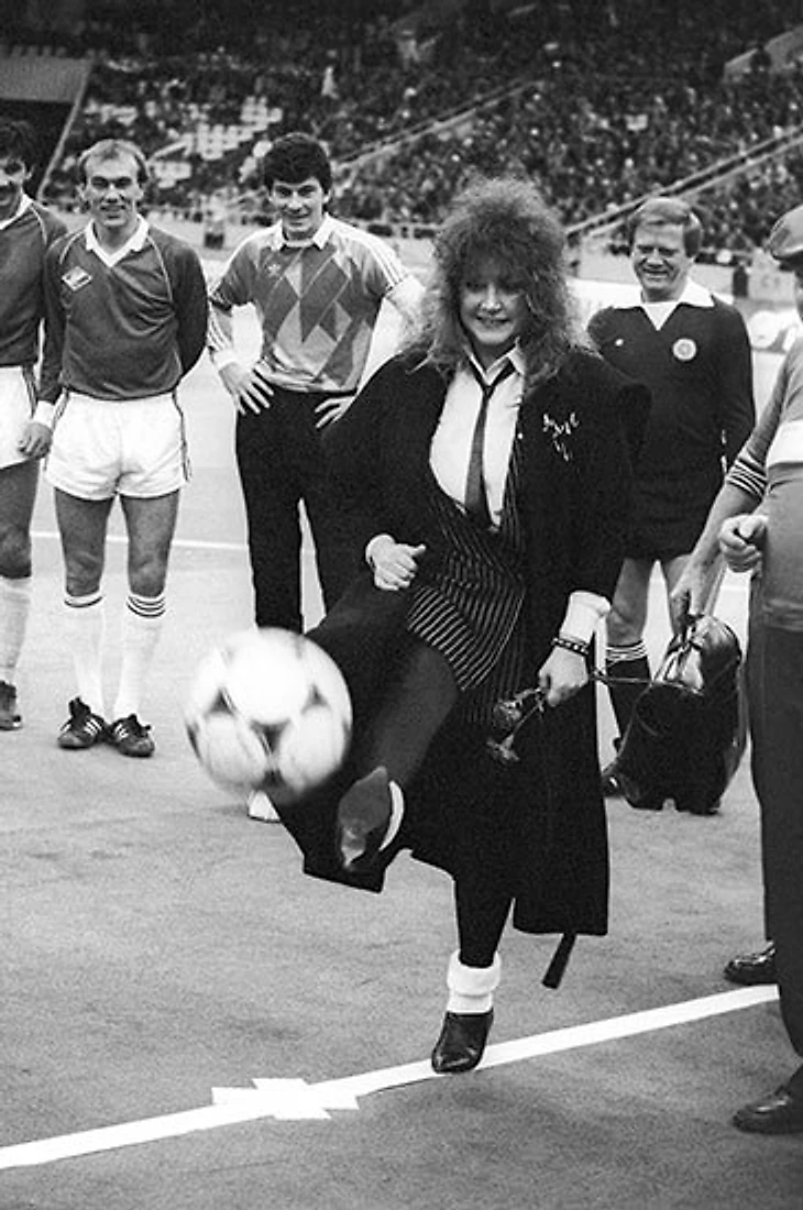 На четвертом фото суперзвезда советской эстрады Алла Пугачева 15 ноября 1987 года в спорткомплексе «Олимпийский» открывает матч спартаковцев и тбилисцев. Судя по всему, у всех прекрасное настроение. У Пугачевой – что по мячу попала. У Рината Дасаева, Вагиза Хидиятуллина и Юрия Суслопарова – ведь они уже чемпионы. У судьи Ю.Миляускаса из Алитуса – что матч не будет напряженным, ведь все уже и так давно ясно – соперники свои турнирные задачи решили. Но все равно вынесет предупреждение Хидиятуллину за минуту до финального свистка