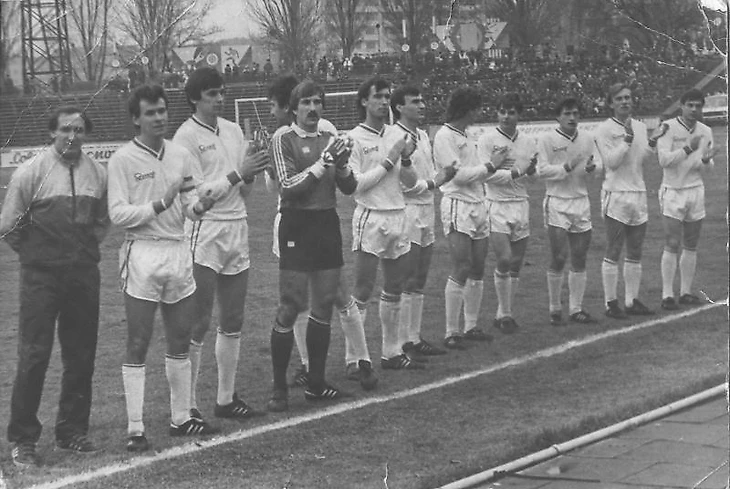 Про сам матч «Днепр» - «Динамо» Минск. Обе команды порадовали зрителей результативным футболом. «Дублями» отличились лидеры атак своих клубов – Кондратьев и Протасов. Причем последний стал лучшим бомбардиром чемпионата СССР 1987 года, наколотив соперникам «Днепра» 18 мячей. Так что аплодируем Протасову (на заглавном фото шестой за голкипером Сергеем Краковским и игроком, ставшим спиной к объективу камеры) вместе с «Днепром». Литовченко, кстати, второй.