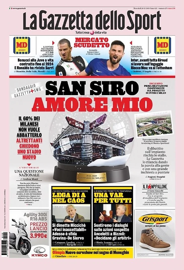 «Сан Сиро», моя любовь. Заголовки Gazzetta, TuttoSport и Corriere за 20 ноября