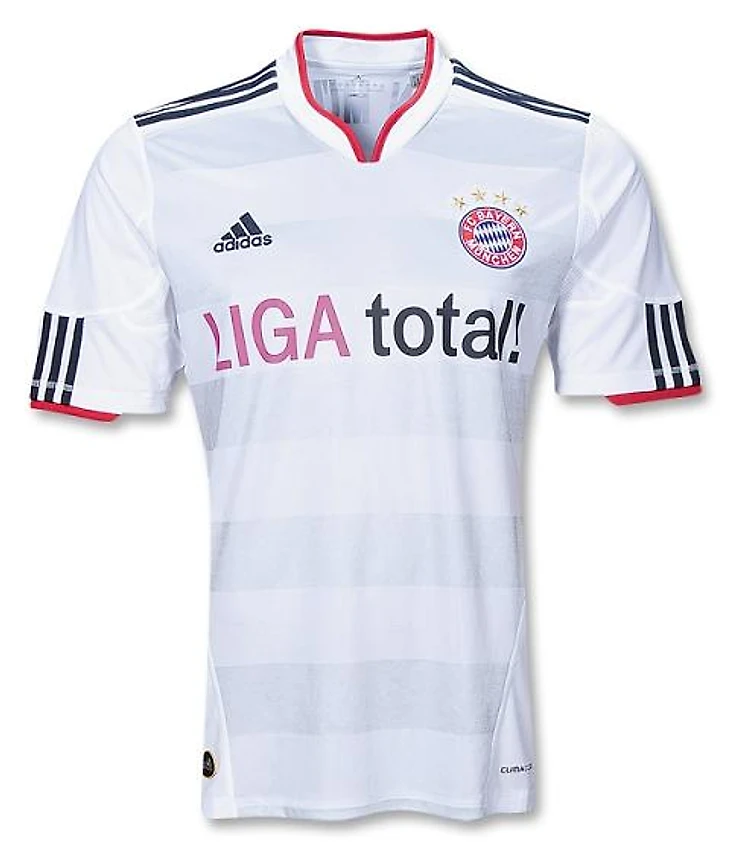 Выездная форма без изменений. В том сезоне "Бавария" могла впервые в истории оформить требл, однако этому не суждено было состоятся. В мадридском финале ЛЧ, подопечные Луи Ван Гала уступили "Интеру" Жозе Моуриньо.