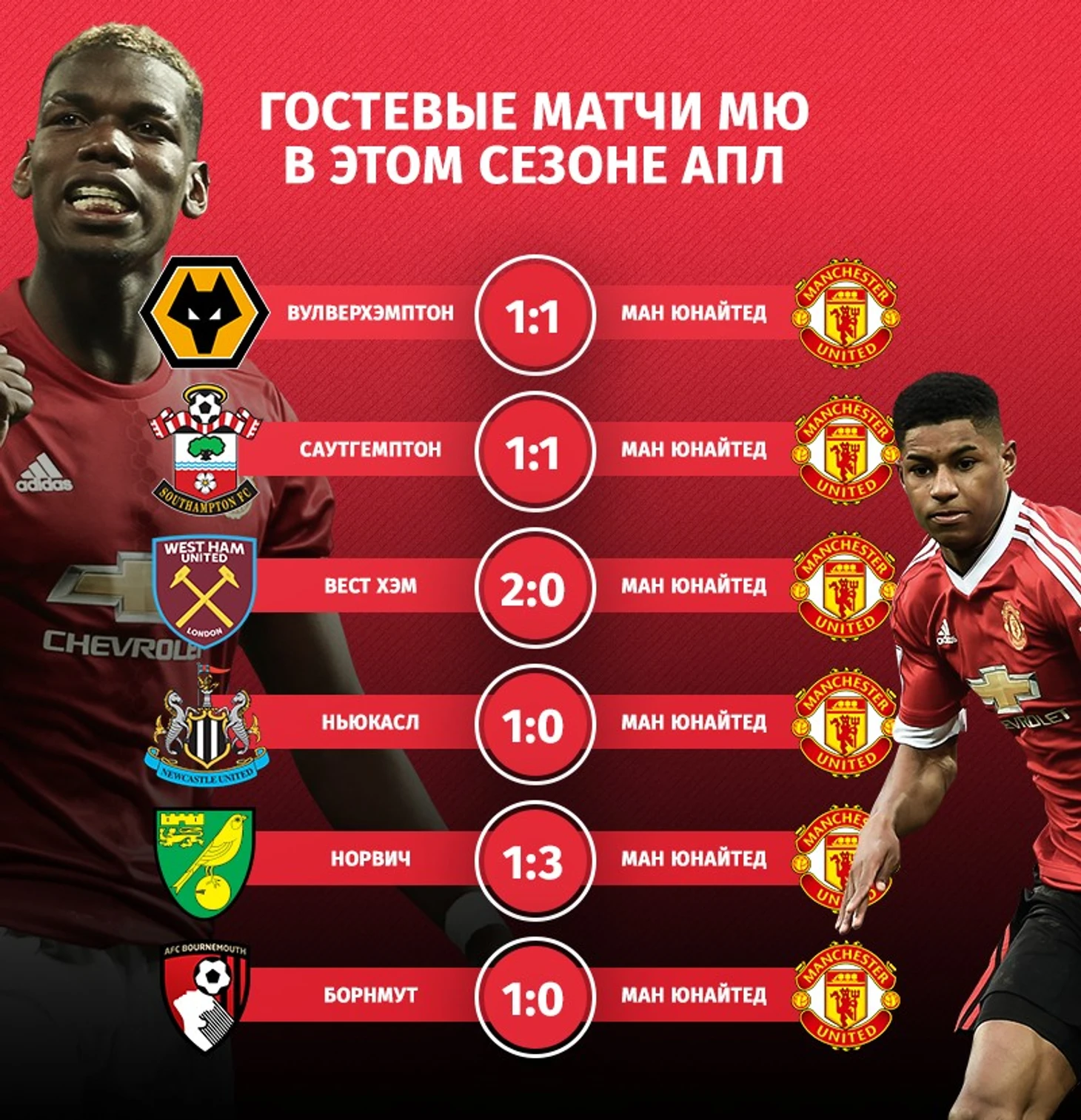 Ну а теперь взглянем на самое страшное – последние гостевые матчи МЮ в АПЛ: