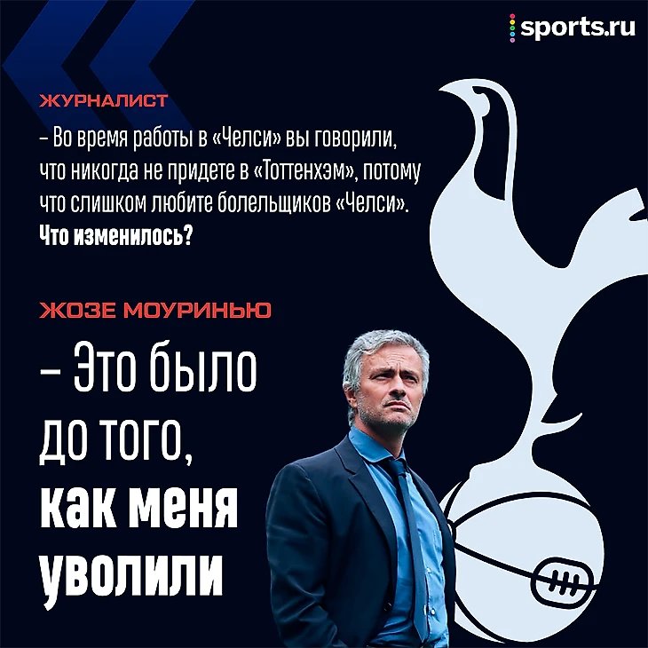 Заодно Жозе напомнили, что во времена работы в «Челси» он обещал не тренировать «Тоттенхэм»: