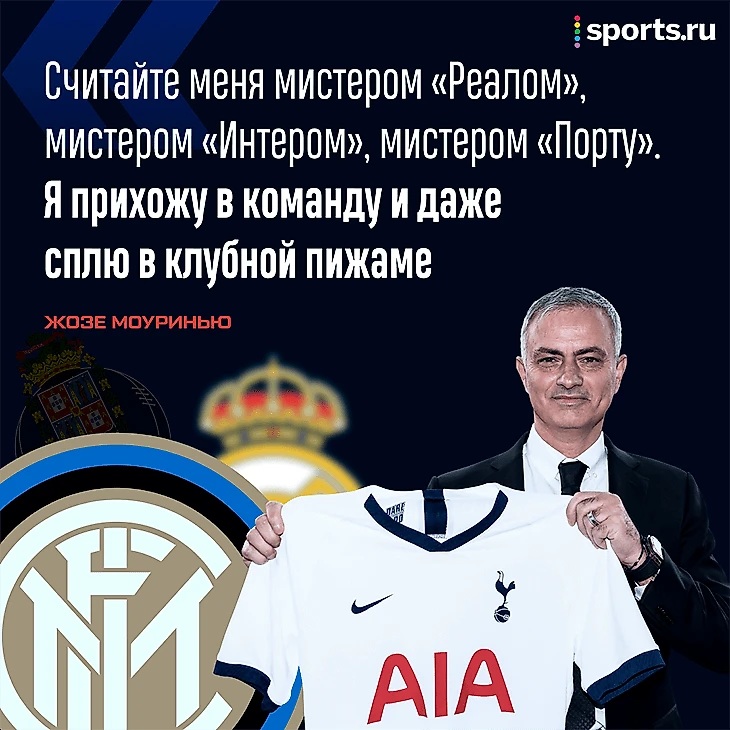 Но фанаты «шпор» все равно считают Жозе «мистером Челси». Тренер же указал на то, что был предан каждому клубу, в котором работал: «Считаю, что они должны видеть во мне «мистера Реала», «мистера Интера» и «мистера Порту». Я клубный человек, даже сплю в клубной пижаме, когда прихожу в команду.