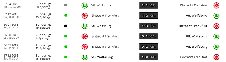 Но «Вольфсбург» выиграл каждый из своих последних трёх матчей во Франкфурте с суммарным счётом 5:1.