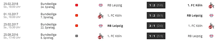 В матчах между «Лейпцигом» и «Кёльном» ещё никогда не было пенальти или красной карточки.