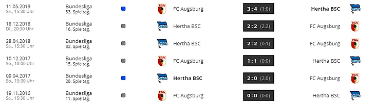 «Герта» непобедима уже девять матчей против «Аугсбурга», в последний раз они проиграли в сентябре 2014 года со счётом 0:1, когда Паул Верхаг забил пенальти.