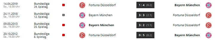 «Дюссельдорф» не может победить «Баварию» уже восемь матчей. В последний раз одержать победу над мюнхенцами им удавалось в сентябре 1995 года в Кубке Германии со счётом 3:1.