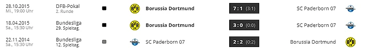 Из прошлых четырёх встреч клубов «Дортмунд» выиграл три, один раз была ничья, а забил 16 раз, в то время как «Падерорн» пять.