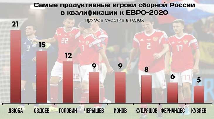 Самые продуктивные игроки сборной России в квалификации Евро-2020