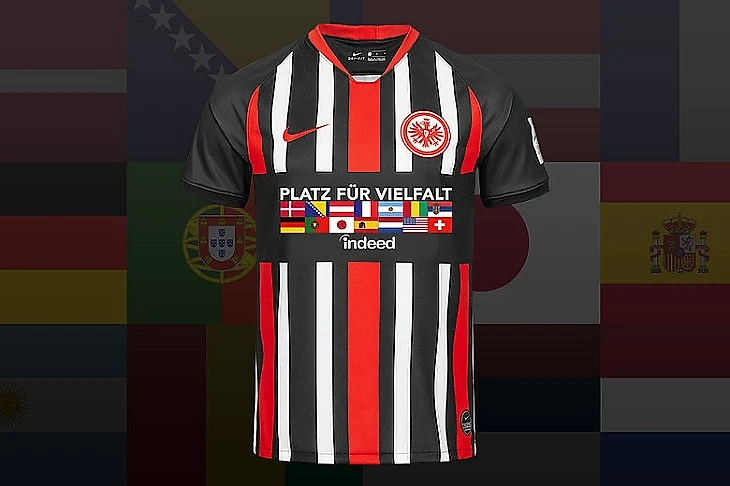 Изящная акция «Айнтрахта» против расизма: сыграли в футболках с 14 флагами на груди. В клубе игроки 14 национальностей