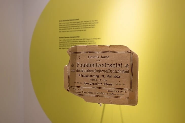 Первый немецкий чемпионат состоялся в мае 1903 года. На фото билет на финал в Альтоне, где «Лейпциг» (VfB Leipzig) выиграл у «Праги» (DFC Prag) со счетом 7:2.