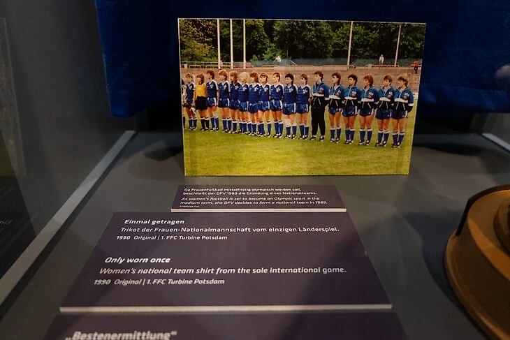 В «первом тайме» посетители узнают и о развитии женского футбола в Германии. С 1955 по 1970 год женский футбол был запрещен Немецким футбольным союзом. Путь к признанию был долгим и сложным. В газетах даже были заголовки «Если моя жена будет играть в футбол – это развод».
