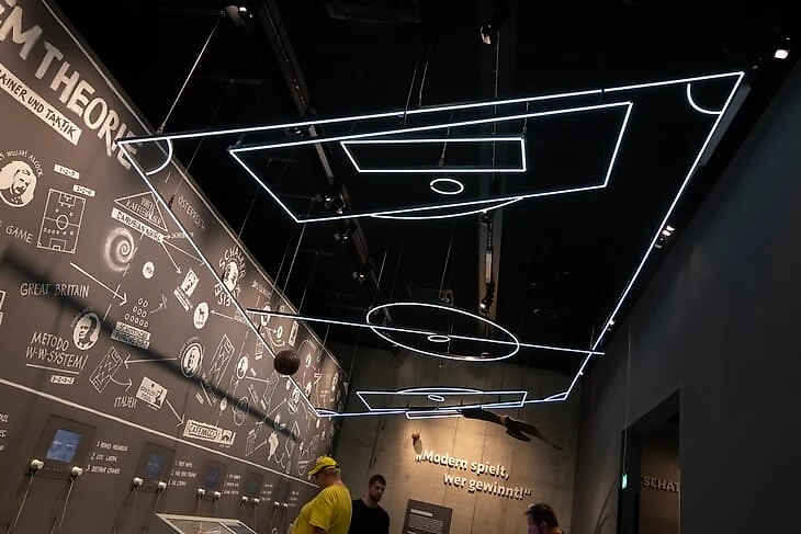 В «перерыве» можно передохнуть и послушать о развитии тактики в футболе и тренерах. Или пойти посмотреть 3D кино об истории немецкого футбола. В главных ролях в виде голограмм – легенды Пауль Брайтнер, Лотар Маттеус, Филипп Лам и другие.