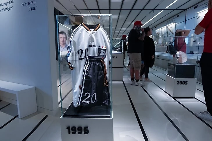 Путешествие во времени – история DFB. Форма Оливера Бирхоффа 1996 года, знаменитая кепка Хельмута Шена, который тренировал сборную ФРГ 22 года, капитанская повязка Бернарда Дитца 1980 года и многое другое.