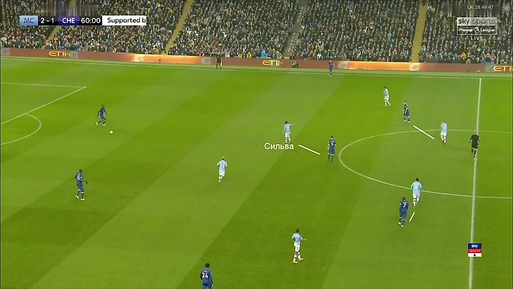 Во-первых, слегка улучшился переход от прессинга к персональной игре. Давид Сильва (до травмы) подсказывал партнерам и следил за тем, чтобы никто из полузащитников «Челси» не получал свободы: