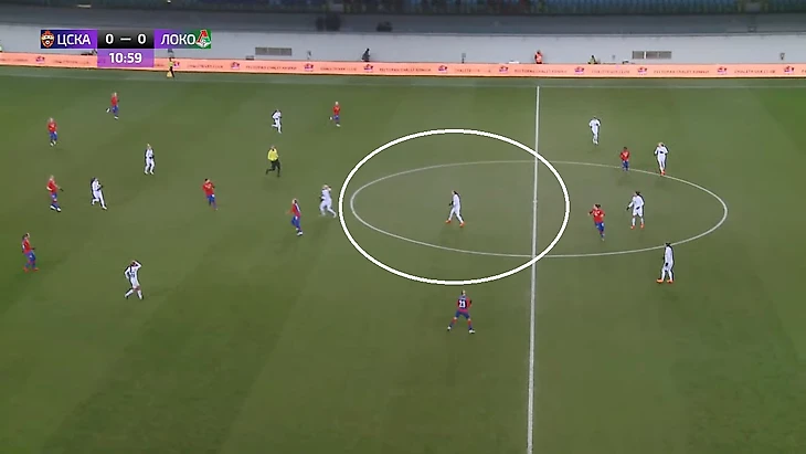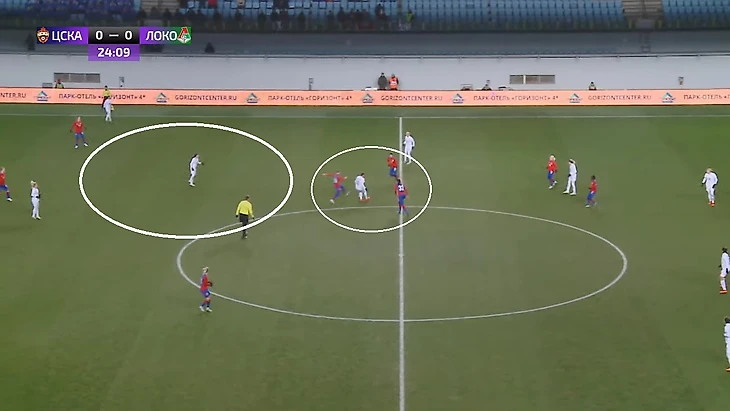 Прессинг – основной элемент игры ЦСКА. Обычно они зажимают своих соперников на их трети поля и просто душат их постоянным давлением. С "Локомотивом" получалось не особо. Во-первых, гости не прижимались, во-вторых, "железнодорожницы" могли наказывать за оставление игроками ЦСКА свободных зон при выдвижении в прессинг: