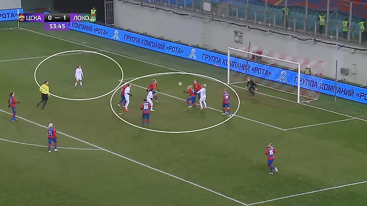 ЦСКА неуверенно действовал при стандартных положениях. По всей видимости, установка при обороне угловых – действовать по мячу. В таком случае "армейки" оставляют неприкрытыми сразу нескольких игроков соперника. Один из таких угловых завершился голом. Поздеева неудачно вынесла мяч, который как раз полетел к свободным футболисткам "Локо". Куропаткина пробила в касание: