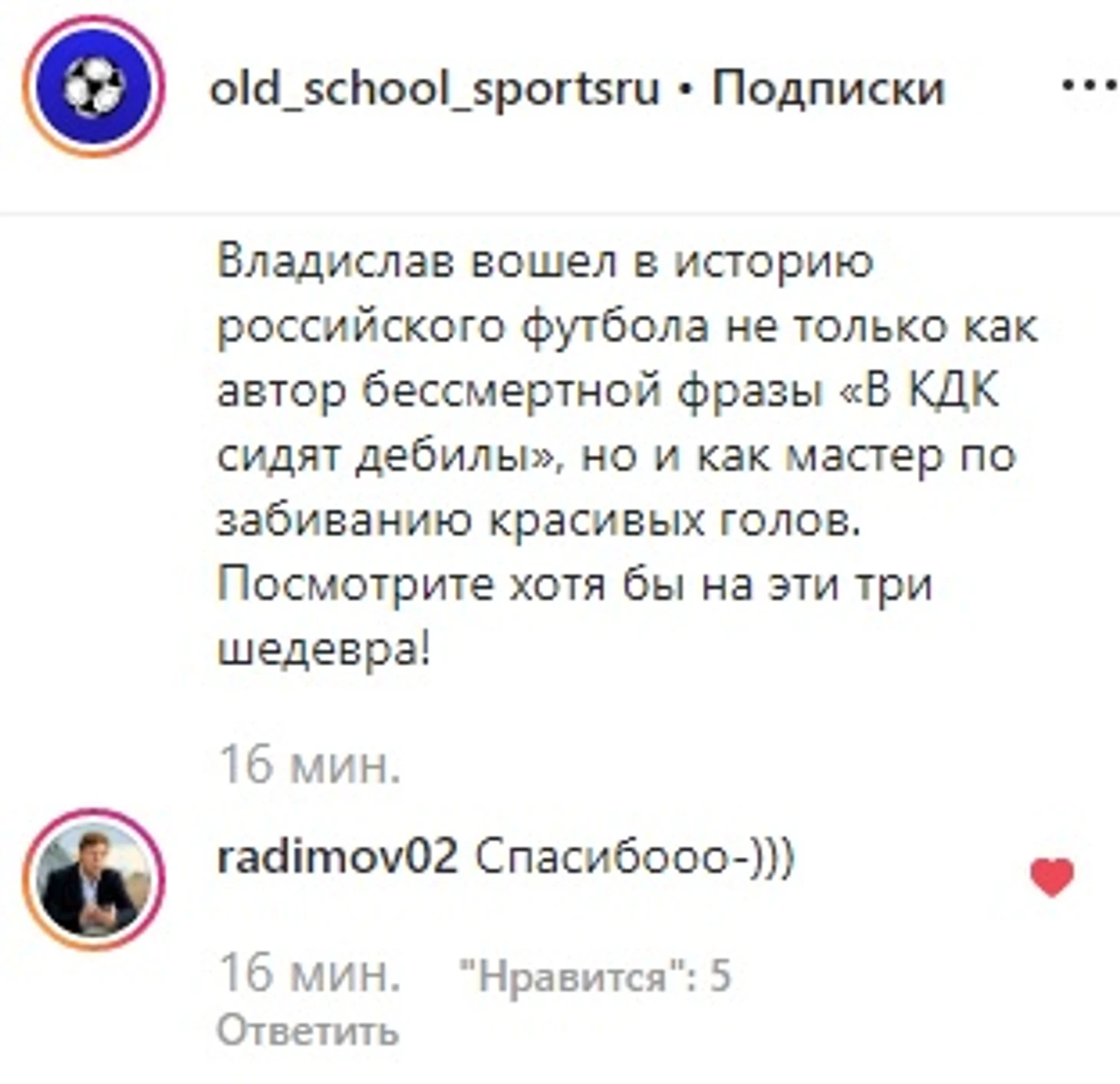 Владислав вошел в историю российского футбола не только как автор бессмертной фразы «В КДК сидят дебилы», но и благодаря красивым голам. Посмотрите хотя бы на эти три шедевра!