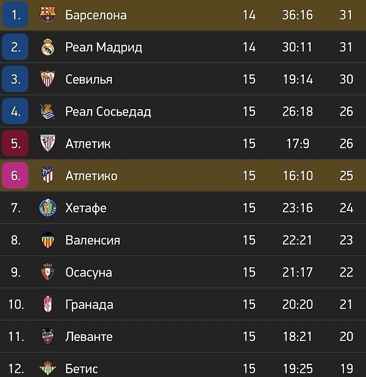 Атлетико упал на шестое место, а Барса возглавляет турнирную таблицу.