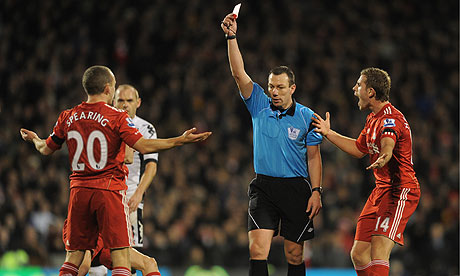 Кевин МакКара считает, что Суарес опять попал в переплет: «Нападающий «Ливерпуля» Луис Суарес может быть наказан за непристойное поведение после того, как он показал неприличный жест болельщикам «Фулхэма» в конце матча, который его команда проиграла. Суарес был сфотографирован во время ухода в тоннель. Фанаты «Фулхэма» скандировали «обман» в его адрес из-за ситуации, когда судья матча Кевин Френд не назначил пенальти после падения уругвайца в штрафной «Фулхэма» во втором тайме. ФА решила подождать официального отчета о матче прежде чем решить, принимать ли какие-либо меры».