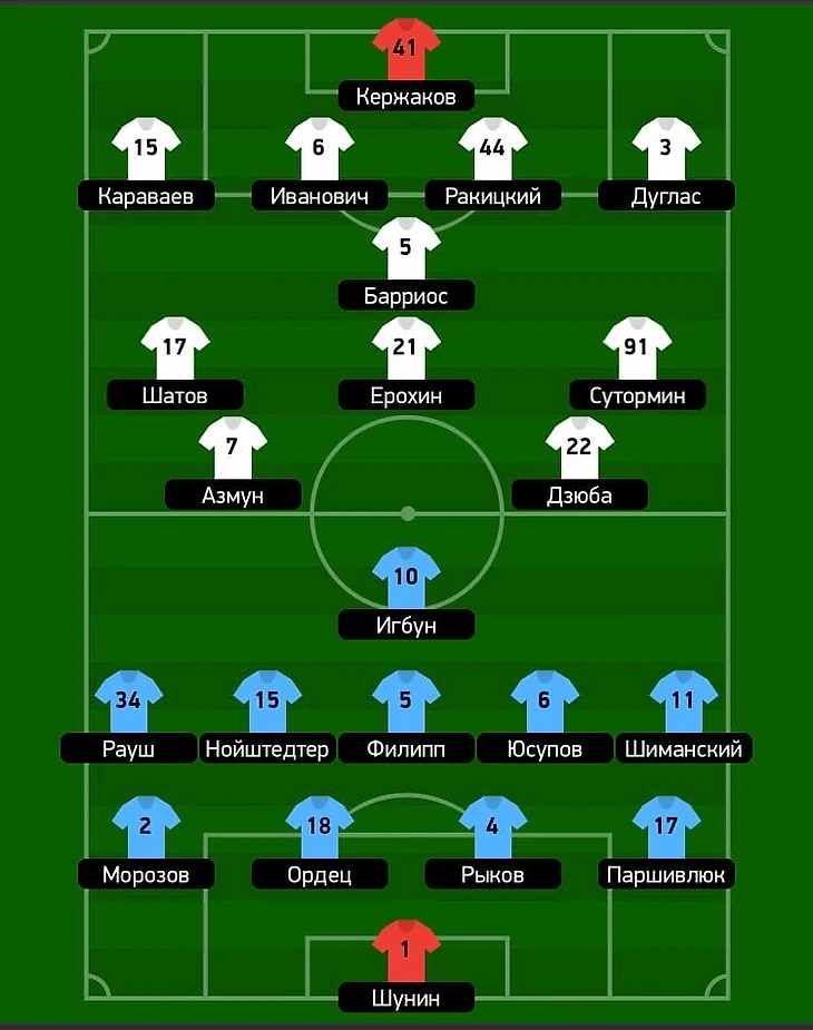 Стандартные 4-4-2 по расстановке Зенита, все позиции кроме отсутствия Дриусси (либо подготовка уже к игре в Лиссабоне, либо имеются какие-то проблемы) можно было угадать ( с учетом дисквалификации Оздоева). Видимо , тактическая революция намечается у Сергея Богдановича именно в зимний перерыв, чтобы в команду можно было без потерь качеств остальных вписать Малкома, который должен выздороветь и Кокорина, который готовится именно ко второй части сезона.