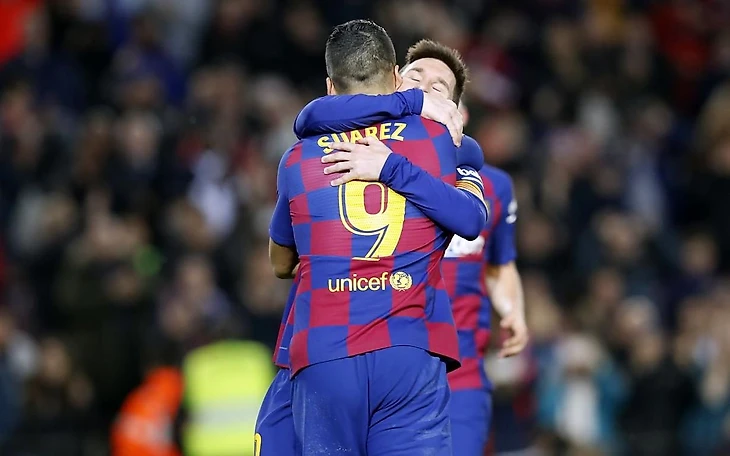 Дружеские объятия от Месси и Суареса после гола Лео