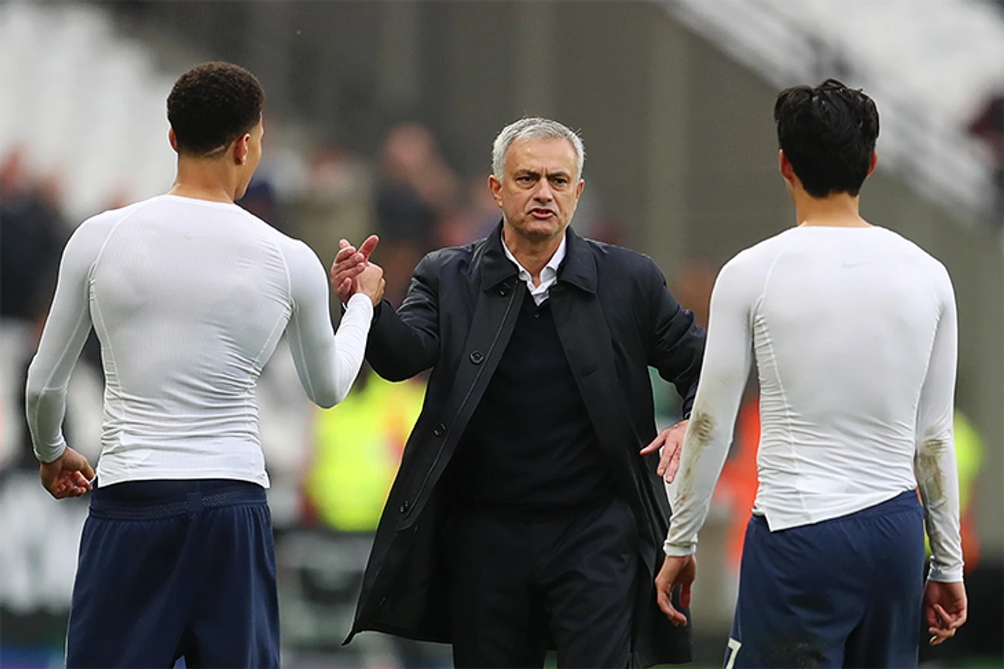 Моуринью сразу четко описал структуру, которую хочет видеть: в центре поля должны быть Дайер и игрок, который будет доставлять мяч до атакующей четверки (Уинкс или Ндомбеле). Другой важный момент при розыгрыше мяча от вратаря описал Сон: «Почти пять лет мы пытались разыгрывать мяч от своих ворот, но теперь пробуем кое-что новое. Мы должны бороться за подборы». Гассанига отправляет мяч на Кейна, Харри цепляется (при Моуринью число выигранных верховых единоборств выросло более, чем в 2 раза 4,8 против 2,3 при Почеттино) и скидывает его партнерам по атаке: Деле, Сону или Лукасу.