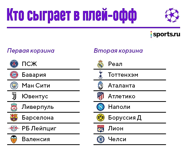 Схема остается прежней: победители групп (первая корзина) сыграют с командами, занявшими вторые места (вторая корзина). В 1/8 не могут встретиться команды из одной страны и группы. Команды первой корзины играют первые матчи в гостях.