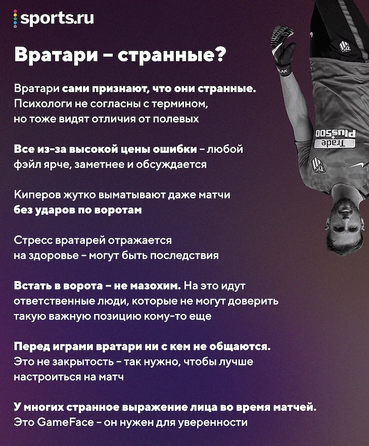 • Вратари склонны к самокопанию. Из-за переживаний, что их все будут обсуждать после ошибки.