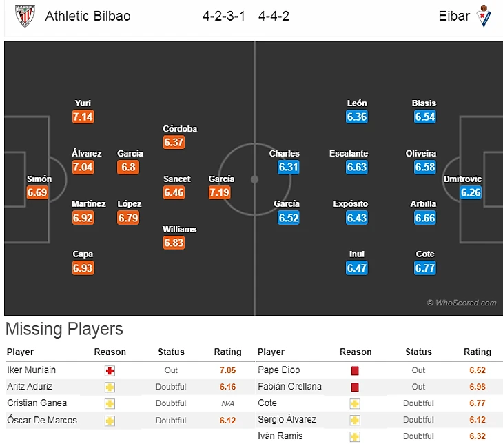 Ну а пока у нас на повестке дня баскское дерби. В котором не примут участия травмированные Рамис(5,5), Арбилья(5,5) и Хосе Анхель(6), а также дисквалифицированный Фабиан Орельяна(7), получивший бан аж на три матча. Как раз до января хватит.