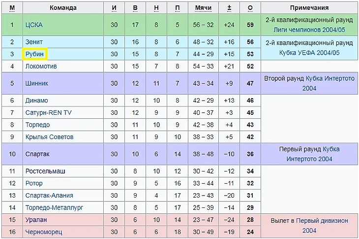 Сезон 2003. Рубин дебютирует в Премьер-лиге и сходу занимает призовое 3-е место.