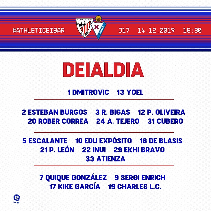 Заявка «Эйбара» на дерби: