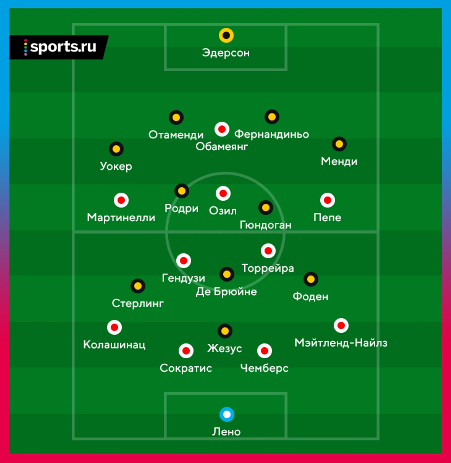 В теории фланговые игроки (Мартинелли и Пепе) могли смещаться и выравнивать ситуацию, но оба скорее вингеры, чем игроки опорной зоны, плюс у «Арсенала» подобное движение пока не отлажено. Торрейра и Гендузи получили больше свободы из-за концентрации на Озиле, они не смогли трансформировать это напрямую в моменты.