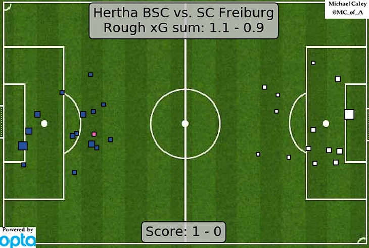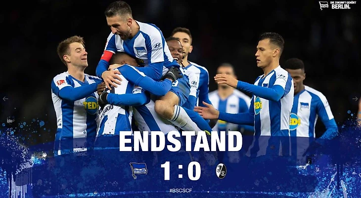Юрген Клинсманн одержал первую победу на новой должности. На Олимпийском стадионе в Берлине был обыгран «Фрайбург» во встрече на равных и без большого количества голевых моментов. Обе команды хотели скорее стабильно сыграть, чем много забить, и в первом тайме по-настоящему опасным можно считать только момент после передачи с фланга в штрафную от Клюнтера на Зельке, но реализовать его помешал Гульде.