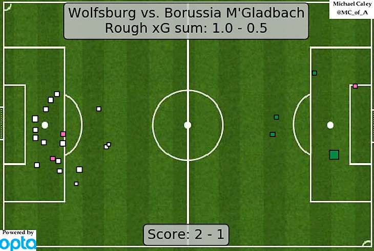 Во втором тайме целый ряд ударов «Вольфсбурга» на фоне более пассивной (за исключением разве что момента Тюрама на 54-й минуте) «Боруссии» не приводили ни к чему вплоть до последней фазы матча, когда на 90+1 удар Арнольда вырвал заслуженные три очка для хозяев. «Гладбах» же вслед за вылетом из европейского кубка опустился на второе место в лиге после более двух месяцев лидерства.