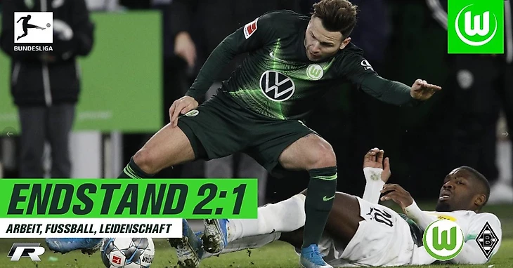 После своих разных итогов осени в Лиге Европы «Вольфсбург» и «Боруссия» встретились в дуэли, которая с самого начала обещала быть интенсивной. Уже на пятой минуте «Вольфсбург» мог выходить вперёд, но удар Жоао Виктора пришёлся в штангу. Зато удар Шлагера на 13-й минуте попал в цель, но радовались хозяева недолго, поскольку буквально сразу же гости ответили голом Эмболо. После яркой начальной фазы до конца первого тайма событий происходило не так много, а игра отличалась большим количеством единоборств и фолов.