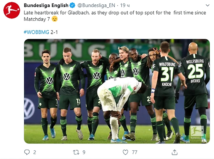 Позднее горе для Гладбаха, так как они выпадают с первого места впервые после 7-го тура