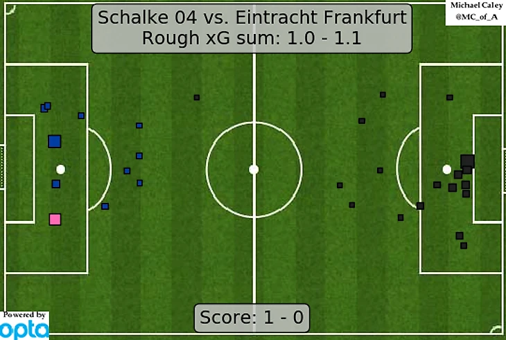 «Айнтрахт» приехал в Гельзенкирхен в статусе худшей команды Бундеслиги по игре на выезде. Не изменился этот факт и после матча с «Шальке», первый тайм которого был безрезультатным для обеих сторон, но вместе с тем напряжённым и жёстким. Действительно вырос темп уже во второй половине игры, когда сначала Костич заставил Нюбеля поработать, а затем Калиджури проверил Рённова. Из-за потери мяча Туре в центре поля на 53-й минуте «Шальке» получили свободное пространства и с быстрой атаки Раман забил с передачи Арита. Но спустя десять минут Нюбеля удалили с поля после чего-то напоминающего приёмы из кунг-фу в отношении Гачиновича, а Шуберт таким образом дебютировал за «Шальке». Конец матча хозяева провели в более глубокой обороне, хотя ещё один серьёзный момент им создать удалось, когда Бургшталлер попал в штангу. Выстояв до самого конца в меньшинстве, гельзенкирхенцы своей минимальной победой защитили своё четвёртое место.
