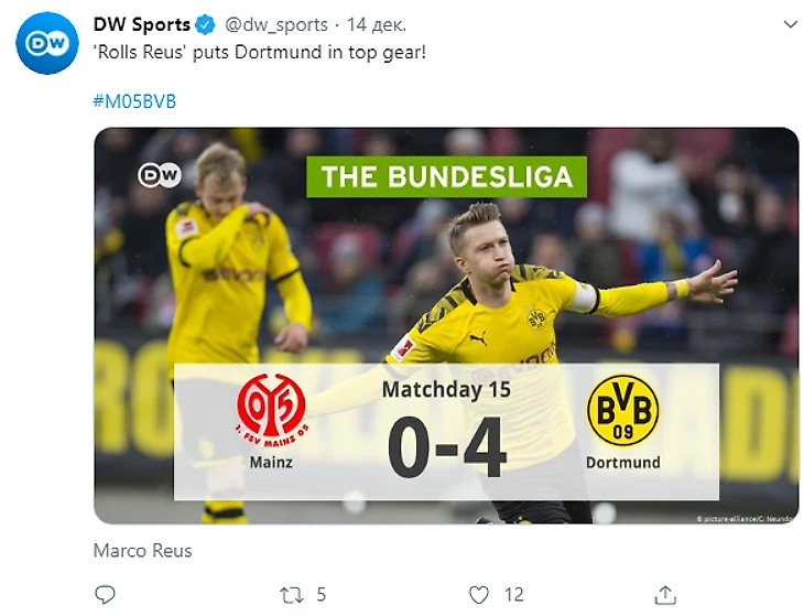 Марко Ройс забил свой 125-й гол в бундеслиге, заодно в 50-й раз оформив в игре счет 1: 0.