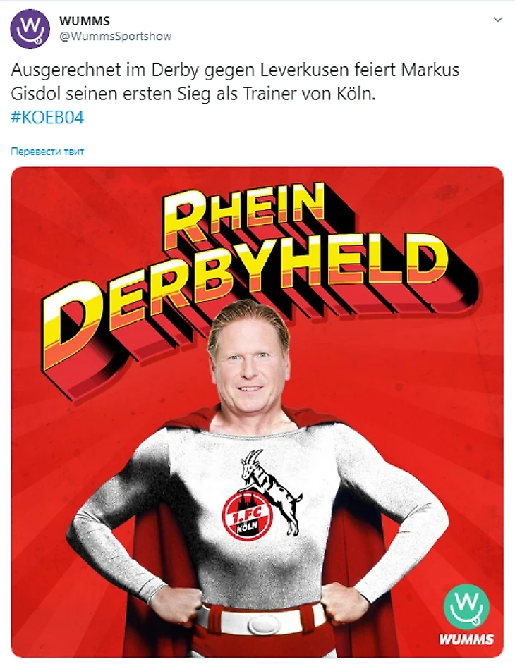 По иронии судьбы в дерби против Леверкузена Маркус Гисдол празднует свою первую победу в качестве тренера в Кельне.